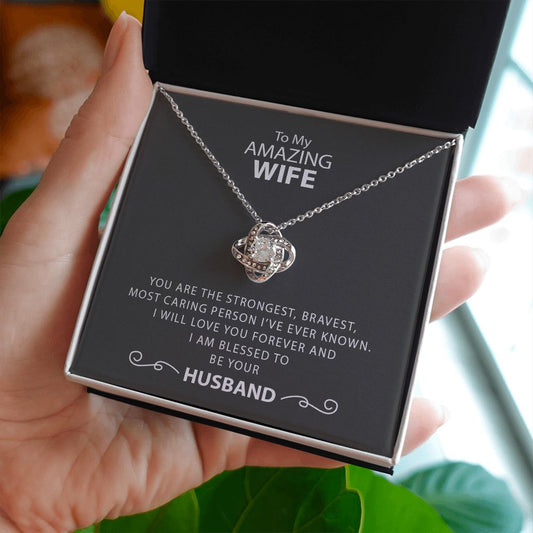 My Amazing Wife | Strongest, Bravest, Most Caring - Love Knot Necklace